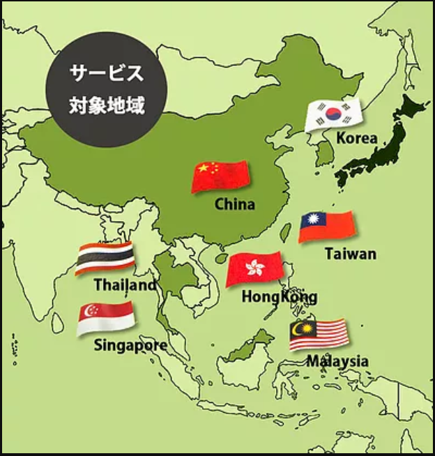 一貫輸送という輸出入通関手続き、自社オペレーションにて消費者の手元へ届けるという形で運用しており、発送対象地域は、中国、香港、台湾、韓国、タイ、マレーシア、シンガポールの7地域です。