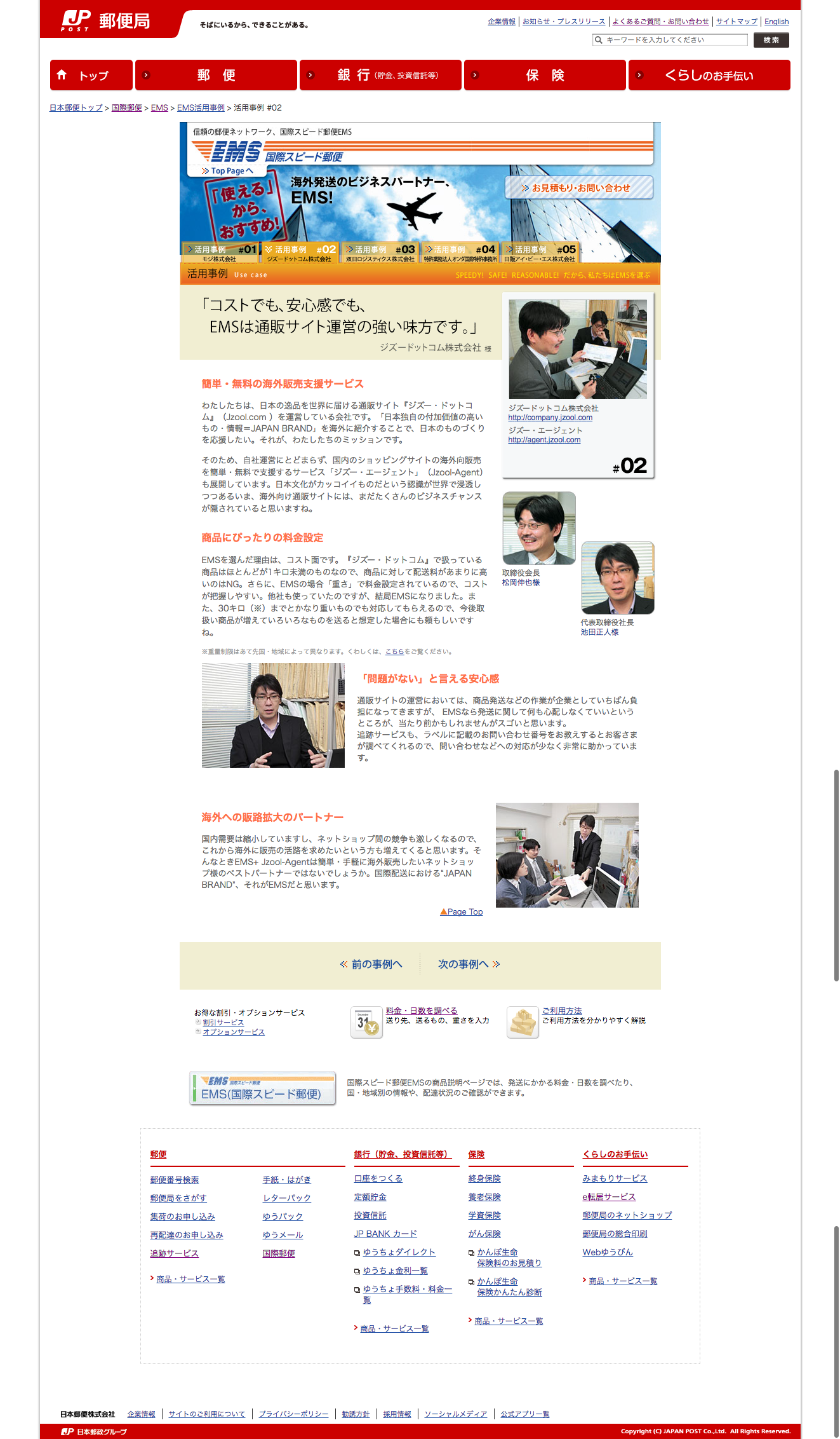 こちらのキャプチャは郵便局のサイト内のEMS活用事例というコンテンツの一部です。