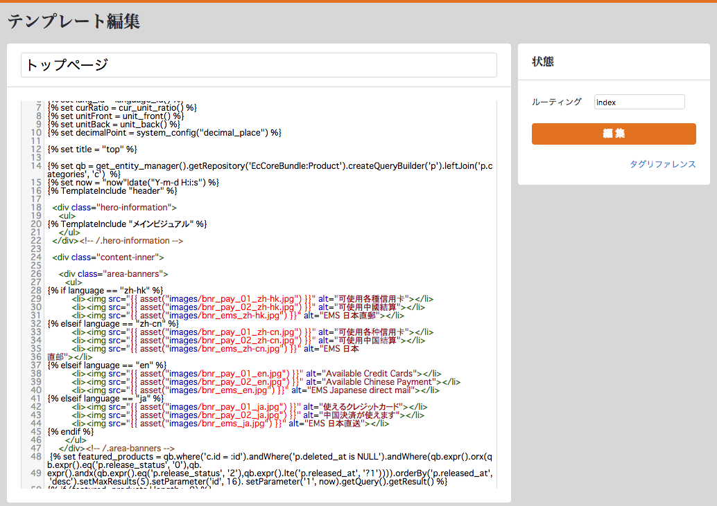 テンプレートエンジン「Twig」を使って前画面、全タグを操作可能です。