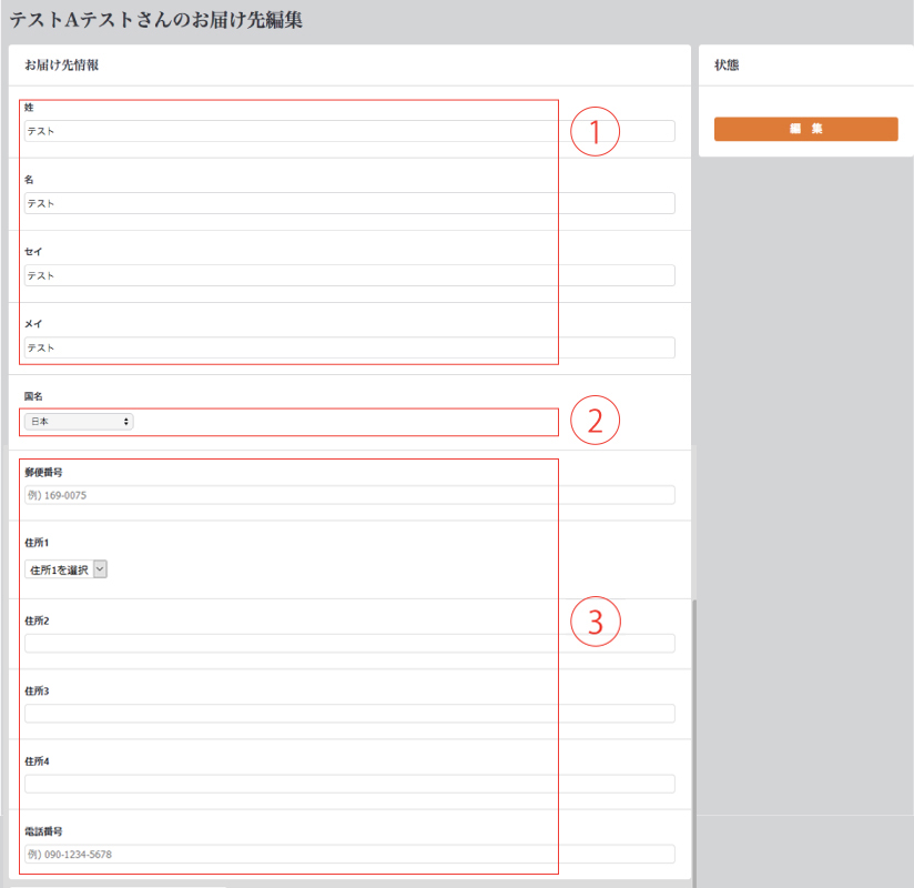 お届先の編集と新規登録は、要素としては同じなので同時に説明します。
