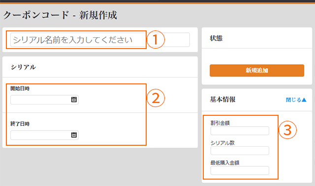 シリアル数:発行するシリアル数を指定します。(編集画面では表示されません)