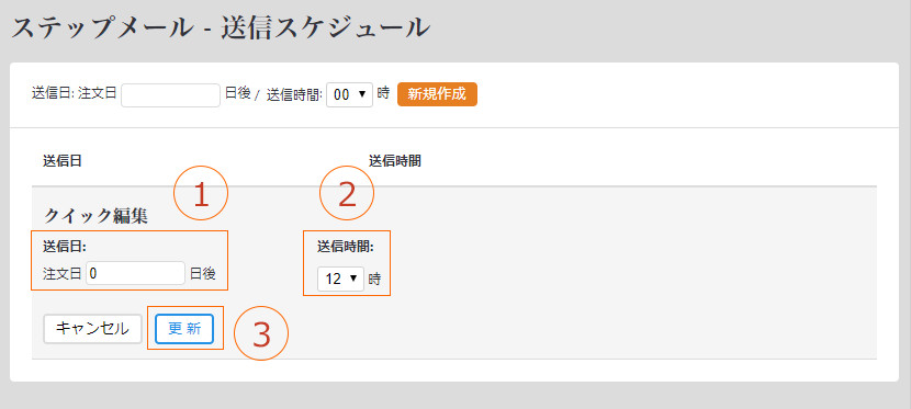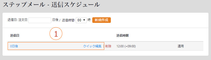 基点(ここでは「注文日」)から何日後にステップメールを送信するか指定できます
