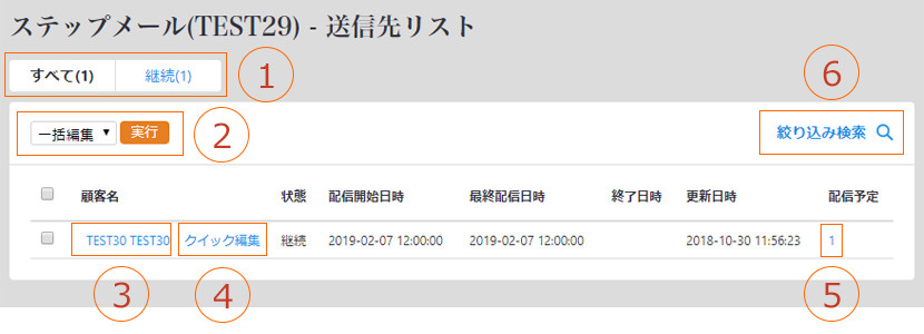 ステップメールの送信リストを閲覧・編集できます