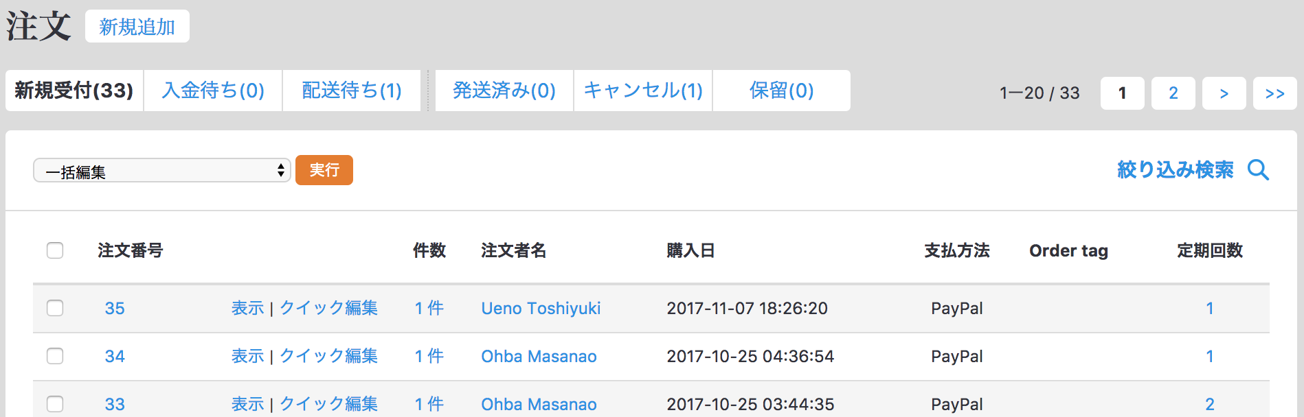 入金を確認し、ステータスを発送待ちに移動する時に使います。