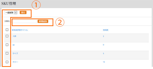 分類名を入力し、新規追加することでSKUを追加することができます。